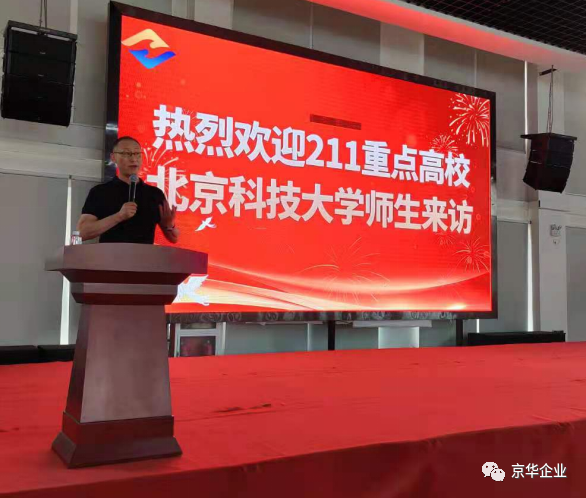 宣講會正式開始:第一項由京華企業(yè)行政副總王飛發(fā)表講話,對師生們的到來表示熱烈歡迎,并對本次實習給出指導性意見,希望今后校企雙方能開展更深入的合作。